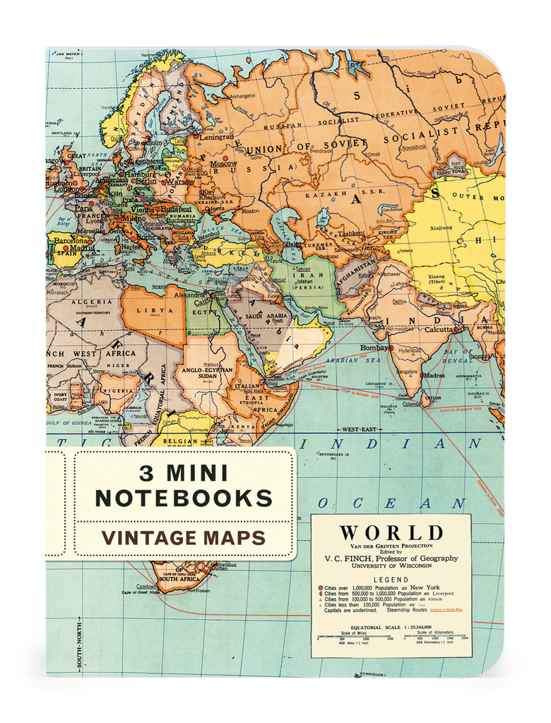 3 mini notebooks Vintage Maps - Cavallini & Co