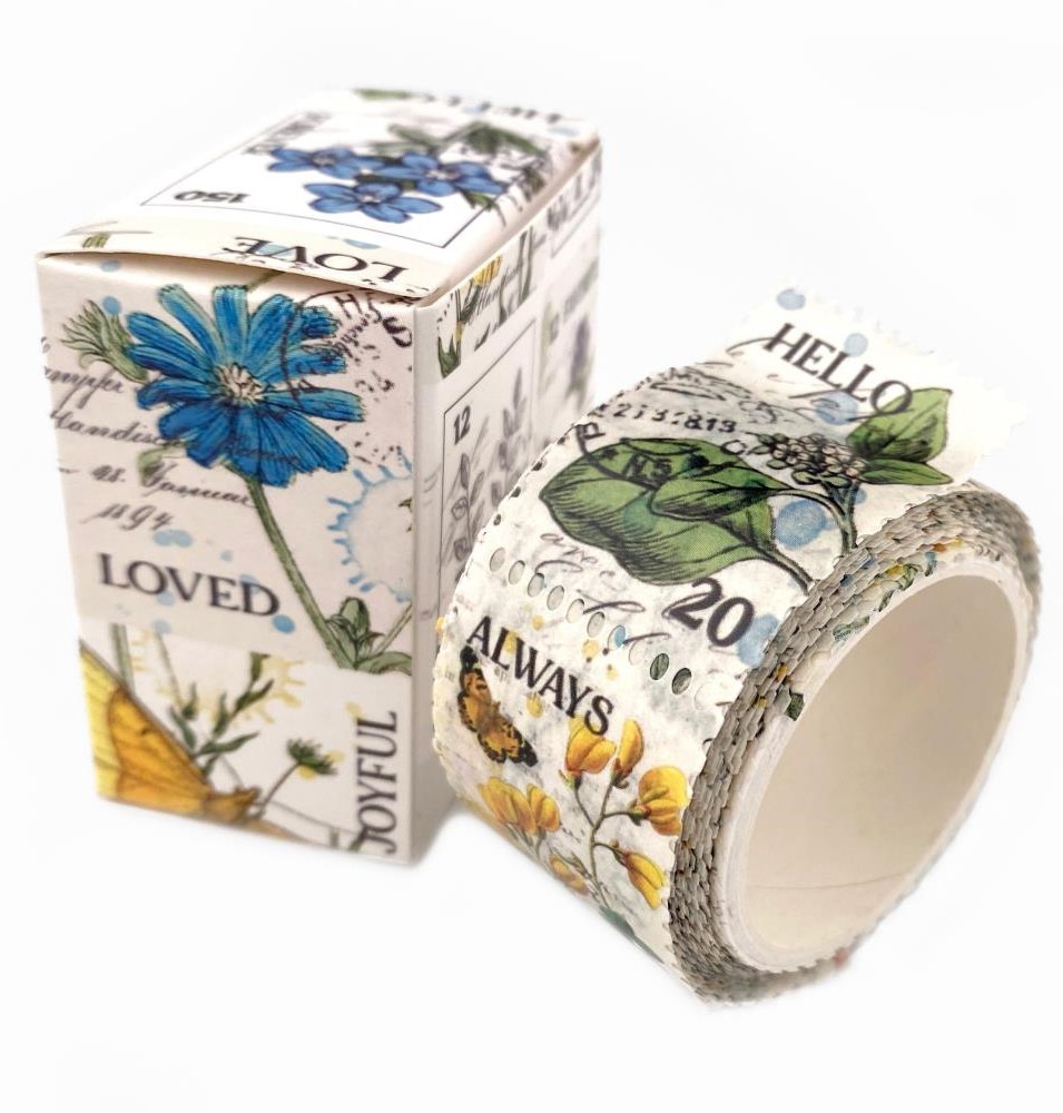 Includes 1 roll of perforated washi tape. Roll is 5m long. Stamps measure approximately 1x1.25 inches.