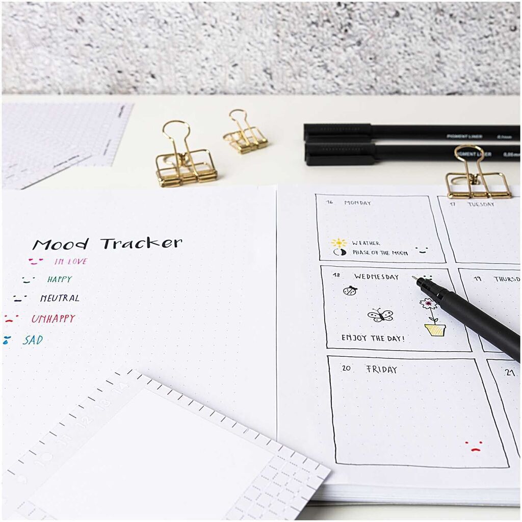 Sjabloonstencil met de meest voorkomende vormen en leukste decoraties om eenvoudig over te trekken in o.a. je bullet journal.