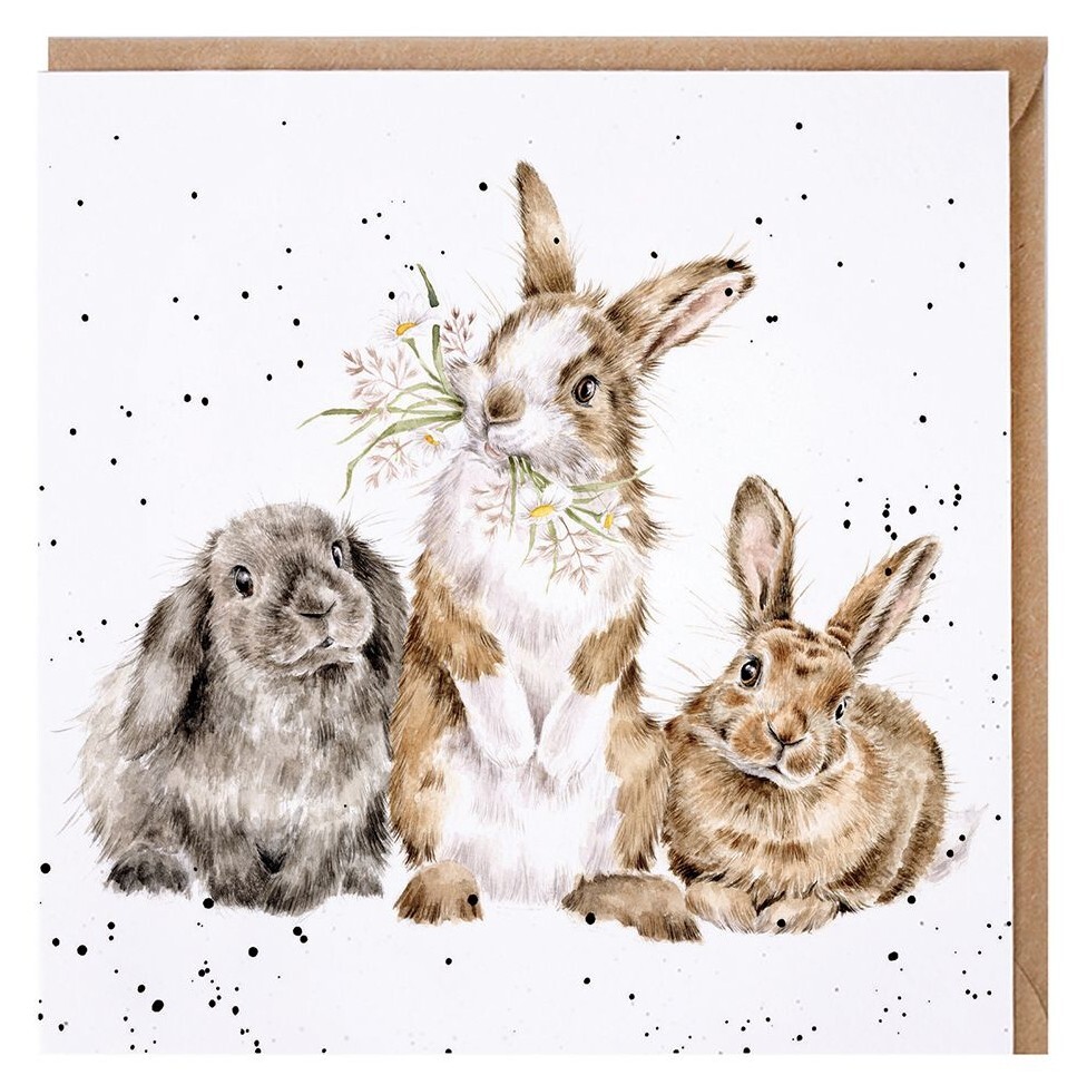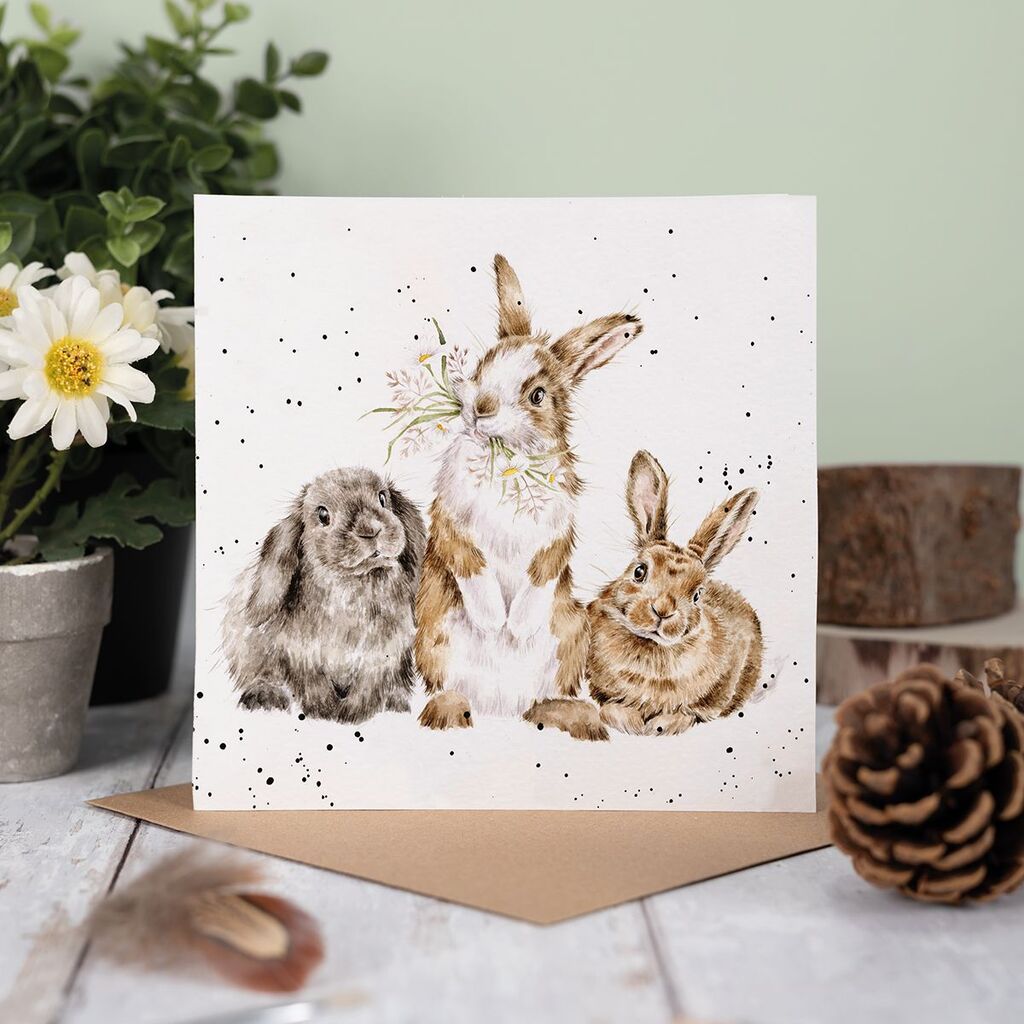 Featuring three lovely rabbits, this card is perfect for any occasion. The image is printed on high quality, sustainably sourced textured board and is left blank inside for your own message. Supplied with a recycled kraft envelope and measures 15cm x 15cm.