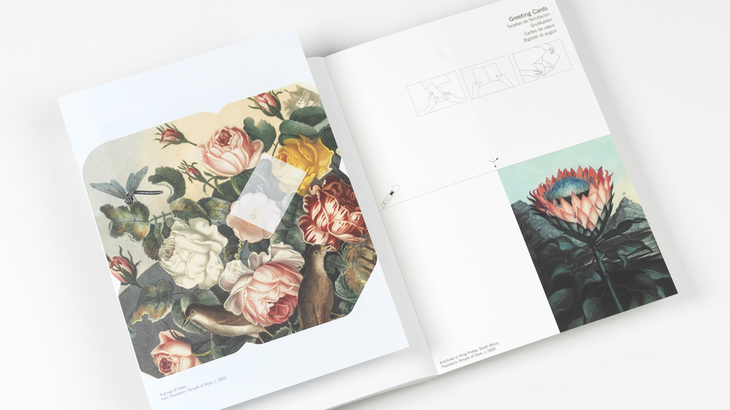 Here, these images have been thoughtfully reproduced on high-quality printed papers. Presented in a neat and compact book, pages of postcards and gift tags are perforated for easy tear-out, while greetings cards and envelopes can be cut, folded and sealed with the decorative stickers provided.