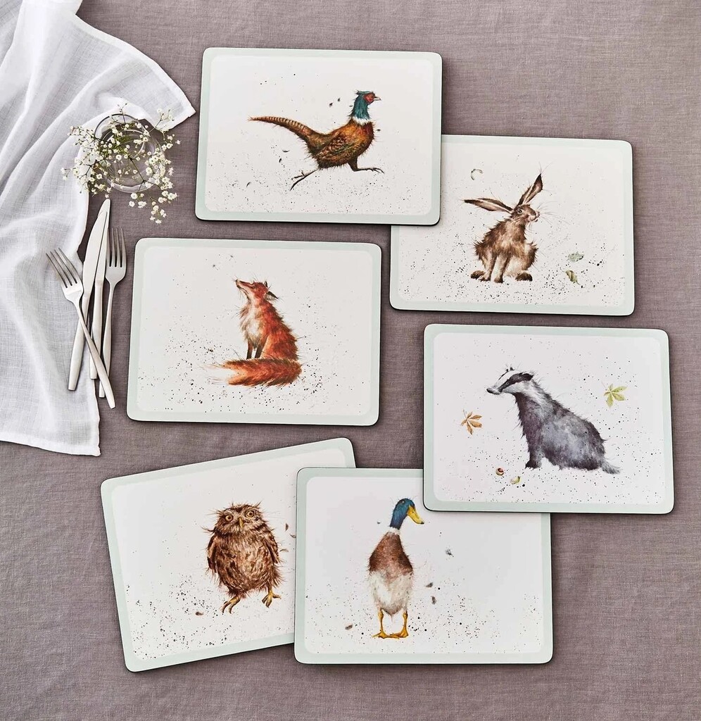 Placemats 6 stuks Wrendale - 'The Country Set' woodland animal placemats