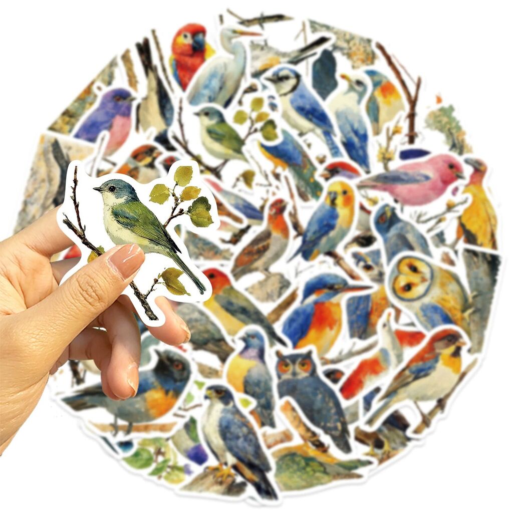 Leuke set met 50 stickers met afbeeldingen van vogels. Formaat wisselend, maar ca. 6 x 4 cm.