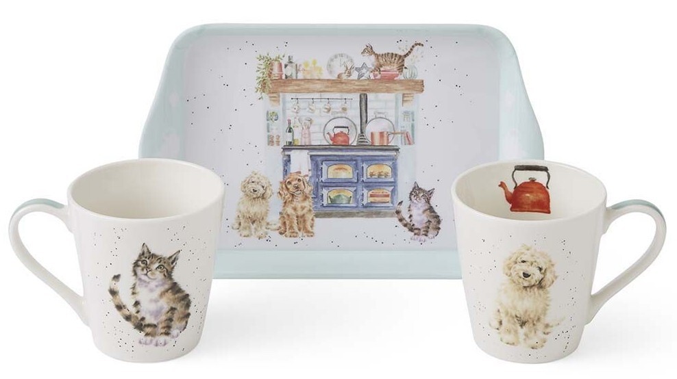 Wrendale 'Country Kitchen' Cat and Dog Mug & Tray Set