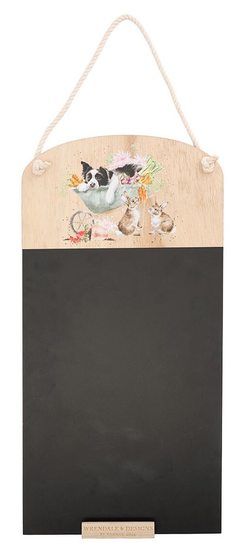 Ideal for in the kitchen or around the home, our chalk boards are perfect for jotting down lists, notes or meal plans. This board featuring a border collie and rabbit design is easy to hang with a rope hanger and has a ledge to keep a piece of chalk handy. 500mm x 250mm. Made from MDF board. Chalk not included.